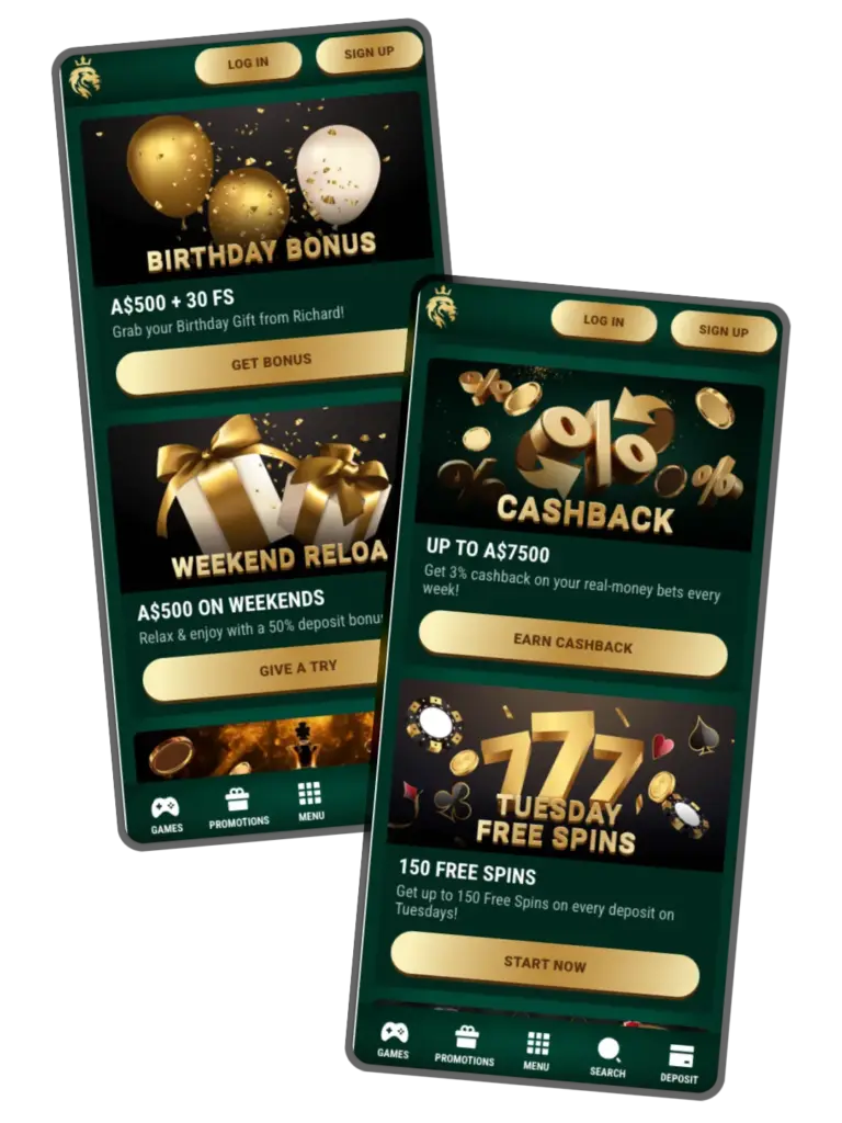 The most popular Richard casino bonus code prizes Australians can leverage right now include: