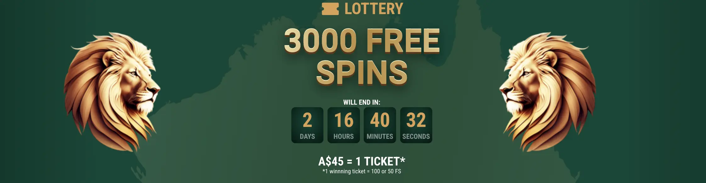 The Lottery promo is another package you won’t need to fund your bankroll to enjoy. For every 45 AUD you spend on our site, you’ll be rewarded with one free lottery ticket. This offer has a 3,000 FS pool, and you can be one of the 55 lucky Australians who get a piece of this action.